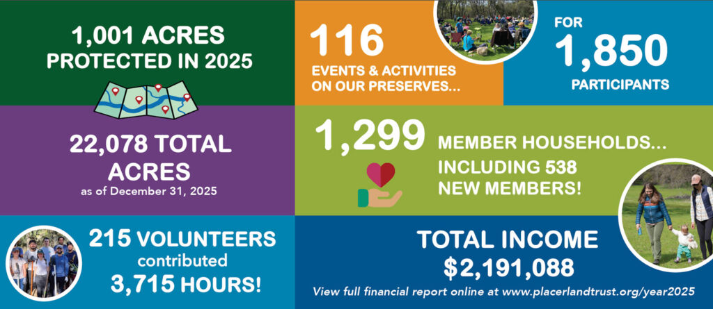 Thank you for being an integral part of the Placer Land Trust team. Together, we will create a lasting legacy in 2026 and long into the future.Β